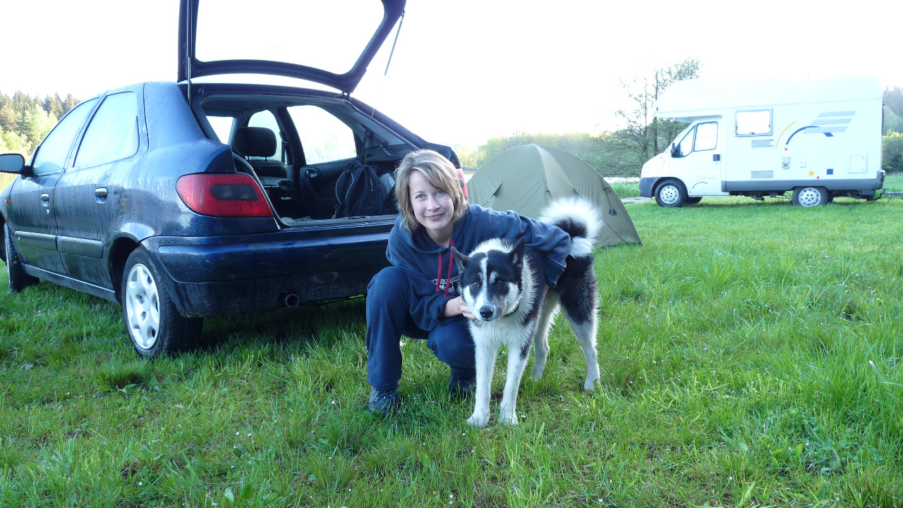 - příjezd v pátek večer, Ešíček preventivně na všecky a na všecko štěkal, všechny pejsky chtěl sežrat - asi měl v plánu vyhladit konkurenci.. přespání v autě proběhlo nad očekávání dobře, Ešík usnul hned, jak za náma zaklaply dveře od kufru. Noc propršela, ale ráno už svítilo sluníčko - po snídani hurá na start: 6:59.. Cesta vedla lesem, potkali jsme spoustu potůčků, kde se dalo osvěžit. Ve dvou třetinách cesty jsme si malinko odpočinuli, Ešík si schrupnul a pak zase vzhůru na cestu. Návrat do cíle: 14:29 - a game over :D marci86.rajce.idnes.cz/kveten_2014_Es_ma_11_mesicu/#P1100056.jpg